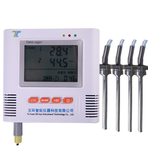四路高温温度记录仪配合有四个温度探头,传感器采用高精度PT1000传感器;四个探头可以实时采集四个不同位置的温度数据